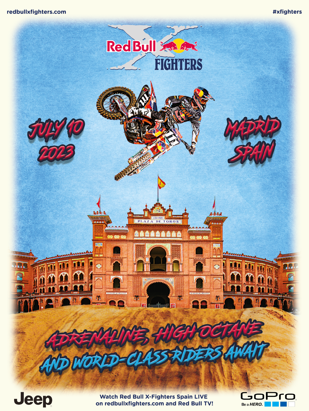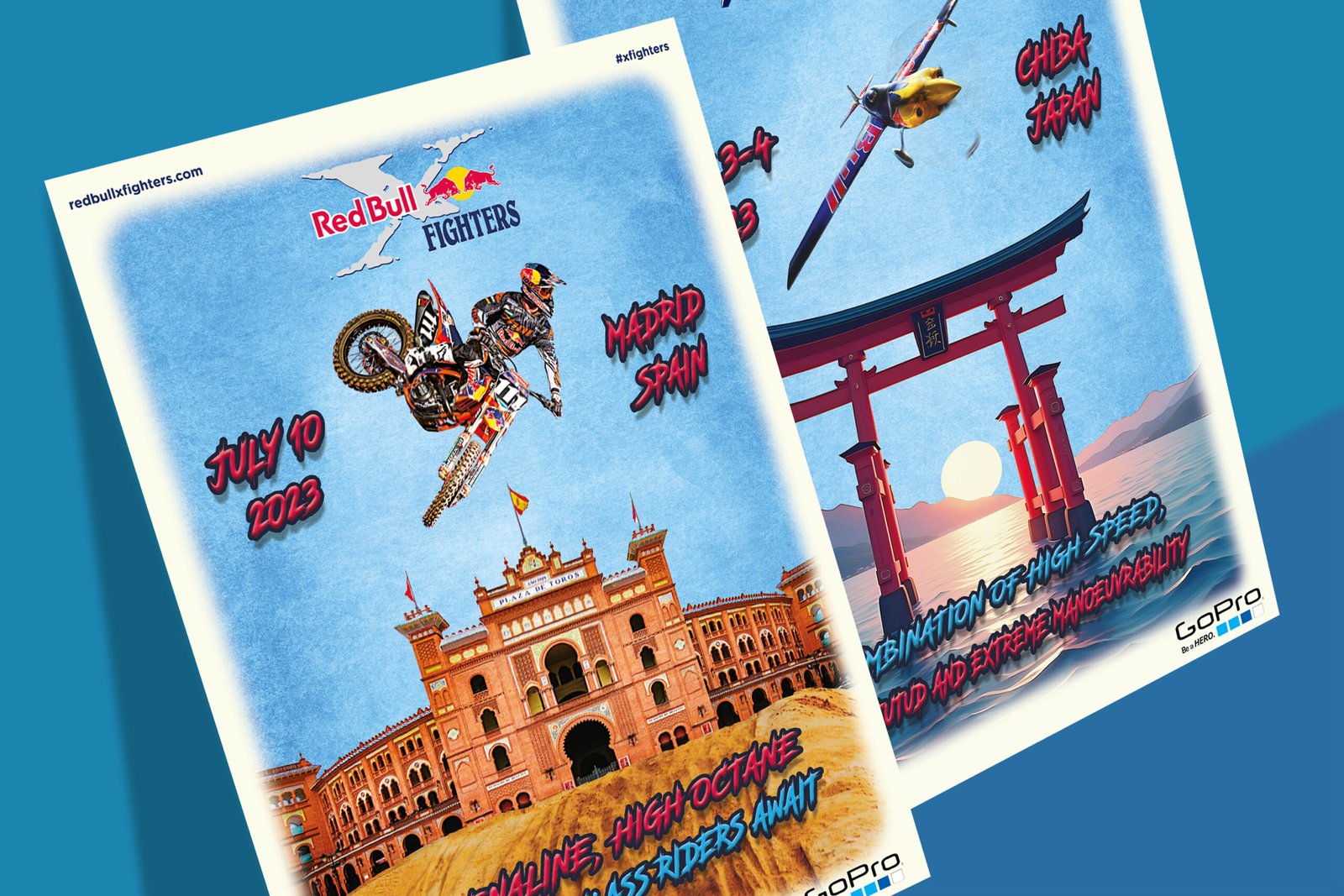 Une approche graphique vibrante et immersive a été adoptée, reposant sur une palette de couleurs saturées avec des contrastes marqués. Les illustrations centrales sont intégrées dans un style semi-réaliste avec des effets artistiques pour accentuer le mouvement. La typographie apporte un caractère rebelle et urbain. Les décors emblématiques (la Plaza de Toros et le Torii japonais) ancrent visuellement chaque affiche dans son lieu géographique tout en maintenant une harmonie visuelle entre les deux pièces.